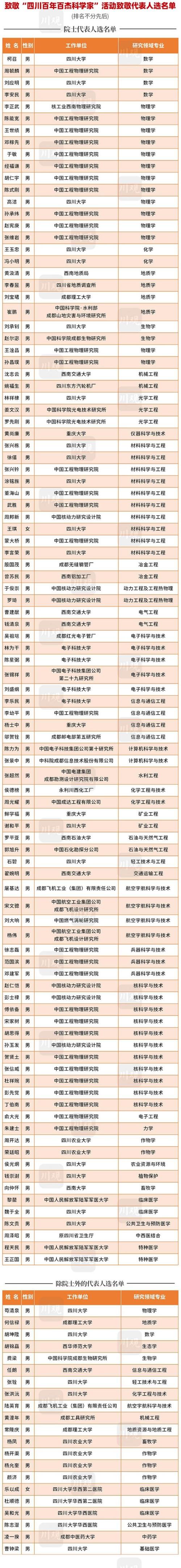 “四川百年百杰科學家”活動致敬代表人選名單