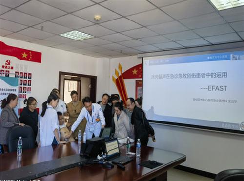 隨后急診科黨支部書記胡強、創(chuàng)傷中心秘書安遠華為基層醫(yī)護人員進行創(chuàng)傷急救知識普及。