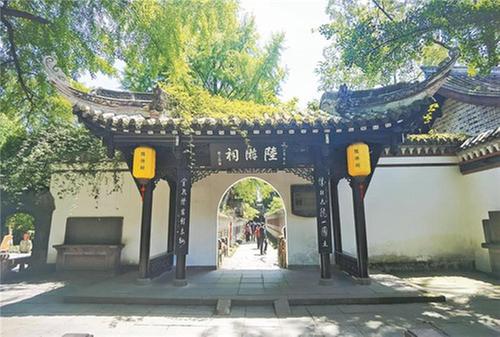 不過,罨畫池真正聞名是因南宋著名愛國詩人陸游在此為官。在罨畫池東隅,便是全國唯一一座陸游紀(jì)念專祠陸游祠。據(jù)了解,北宋年間,陸游兩次在崇州為官,辦公和居住地就在罨畫池畔。陸游對(duì)蜀州有很深的感情,因此用筆墨為罨畫池創(chuàng)作了30余首詩詞,例如“小閣東頭罨畫池,秋來長是憶幽期。”如今,陸游祠序館的匾額上寫作的“香如故堂”,也源于陸游創(chuàng)作的《卜算子·詠梅》中的名句——“零落成泥碾作塵,只有香如故。”