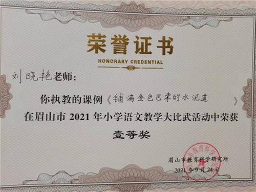 9月23日~24日,由眉山市教育科學(xué)研究所主辦的“眉山市2021年小學(xué)語(yǔ)文課堂教學(xué)大比武”在眉山市第一小學(xué)講學(xué)廳隆重舉行。彭山區(qū)第二小學(xué)的劉曉艷老師代表彭山區(qū)參加本次比賽,經(jīng)過(guò)賽事比拼,劉曉艷老師執(zhí)教《鋪滿(mǎn)金色巴掌的水泥道》一課贏得了在場(chǎng)專(zhuān)家和聽(tīng)課老師的一致好評(píng),獲得活動(dòng)一等獎(jiǎng)。