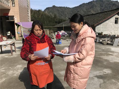 1月21日,高廟鎮(zhèn)紀委書記鄧曲(右一)在水秀村為群眾發(fā)放換屆選舉宣傳資料