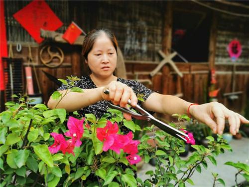 ▲羅勤正在修建花枝