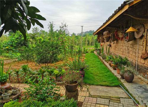 羅勤家的庭院,在她的精心裝扮之下,農(nóng)具擺放整齊有序,園內(nèi)草木茂盛、鮮花綻放,百余種植物把庭院扮靚點綴,別有一番滋味。