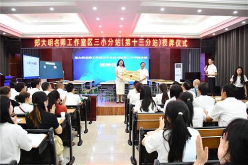 啟動(dòng)儀式結(jié)束后,舉行了鄭大明名師工作室巴州區(qū)三小分站授牌儀式,巴州區(qū)第三小學(xué)成為鄭大明全國(guó)特級(jí)教師名師工作室第十三分站。