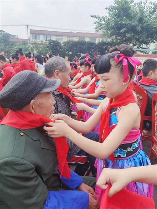活動開始,為了讓爺爺奶奶重溫兒時的美好回憶,彭山二小的孩子們特意為他們準(zhǔn)備了紅領(lǐng)巾,并為他們獻上紅領(lǐng)巾。