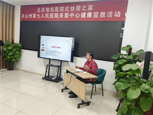 同時(shí),在涼山州第七人民醫(yī)院關(guān)愛(ài)中心,來(lái)自首都醫(yī)科大學(xué)附屬北京地壇醫(yī)院的王克榮教授,代表“紅絲帶之家”為艾滋病感染者進(jìn)行了健康宣教與交流互動(dòng),面對(duì)面為其提供治療依從性教育和心理關(guān)懷,還組織當(dāng)?shù)蒯t(yī)務(wù)人員開(kāi)展個(gè)案管理研討會(huì),結(jié)合涼山當(dāng)前艾防形勢(shì)提出建議,提升感染者健康管理質(zhì)量。