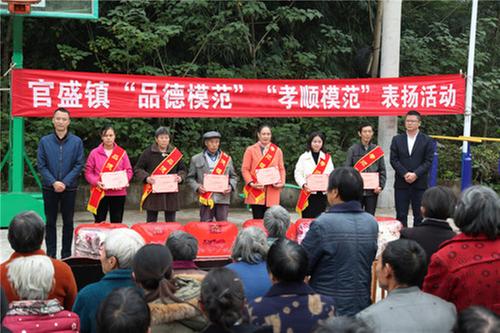 當(dāng)日,為貫徹落實(shí)廣安區(qū)“小平故里紅”黨建行動(dòng)安排部署,豐富群眾精神生活,用身邊人、身邊事引導(dǎo)群眾提升道德修養(yǎng),弘揚(yáng)德孝文化,推動(dòng)文化振興,結(jié)合歡度重陽佳節(jié),廣安區(qū)官盛鎮(zhèn)黨委政府在該鎮(zhèn)的羊角村、茍溪村、芙蓉村、渡口村同時(shí)舉行“德孝模范”表揚(yáng)活動(dòng),對(duì)12名“品德模范”、9名“孝順模范”進(jìn)行了公開表揚(yáng),頒發(fā)榮譽(yù)證書、綬帶和獎(jiǎng)品。