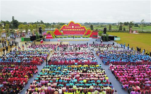 十月的天府鄉(xiāng)村,金風(fēng)送爽,藝韻悠揚(yáng)。10月16日上午,由四川省文化和旅游廳、廣安市人民政府聯(lián)合主辦的以“藝術(shù)鄉(xiāng)村,美好生活”為主題的2020年四川省鄉(xiāng)村藝術(shù)節(jié),在廣安市武勝縣盛大開幕。省政府副秘書長劉全勝出席并宣布鄉(xiāng)村藝術(shù)節(jié)開幕。廣安市委副書記、市長曾卿致歡迎詞,四川省文化和旅游廳黨組書記、廳長戴允康致辭。集中匯演儀式由省文化和旅游廳副廳長趙紅川主持。省文化和旅游產(chǎn)業(yè)發(fā)展領(lǐng)導(dǎo)小組成員單位、廣安市,武勝縣黨委政府及相關(guān)部門負(fù)責(zé)同志,各市(州)文化和旅游部門負(fù)責(zé)同志參加了相關(guān)活動。重慶市文化和旅游發(fā)展委員會有關(guān)領(lǐng)導(dǎo)應(yīng)邀參加藝術(shù)節(jié),并派出節(jié)目參加集中匯演。