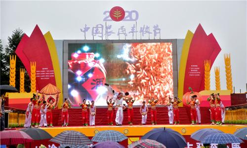 隨著《打谷酒》背景音樂起,活動拉開了帷幕。此后輪番上演的《葡萄熟了》《梨花雪》等表演節(jié)目,均以歡慶豐收為主題,既展示農(nóng)民勤勞耕種和熱鬧豐收的場景,也展現(xiàn)農(nóng)民群眾時代風(fēng)采。