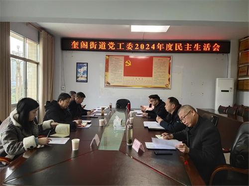 會(huì)議通報(bào)了奎閣街道黨工委民主生活會(huì)整改落實(shí)情況和2024年度民主生活會(huì)征求意見情況。街道黨工委書記代表班子圍繞帶頭嚴(yán)守政治紀(jì)律和政治規(guī)矩,維護(hù)黨的團(tuán)結(jié)統(tǒng)一;帶頭增強(qiáng)黨性、嚴(yán)守紀(jì)律、砥礪作風(fēng);帶頭在遵規(guī)守紀(jì)、清正廉潔前提下勇于擔(dān)責(zé)、敢于創(chuàng)新;帶頭履行全面從嚴(yán)治黨政治責(zé)任等四個(gè)方面作對(duì)照檢查,全面查擺問(wèn)題,結(jié)合反面典型案例,深刻剖析思想、作風(fēng)、紀(jì)律等方面存在的問(wèn)題和不足并提出下一步整改措施。隨后街道黨工委班子成員緊扣民主生活會(huì)主題,逐一作對(duì)照檢查,開展批評(píng)與自我批評(píng),達(dá)到了“紅臉出汗”的效果。