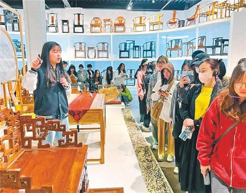 除生動展示了彭州及中國家具發(fā)展歷程外,該博物館還致力于傳承非遺技藝,現(xiàn)有四川省級手工藝大師2人、非遺傳承人4人、木工匠若干,大家以傳承非遺技藝為己任,將博物館打造成彭州市文化新名片。館長梁川更是從2021年起在四川大學(xué)錦江學(xué)院擔(dān)任客座教授,教授《傳統(tǒng)美學(xué)》《創(chuàng)作理念》《木雕及傳統(tǒng)家具審美》等課程,其精湛的專業(yè)技能和淵博的學(xué)術(shù)知識受到師生的一致好評。