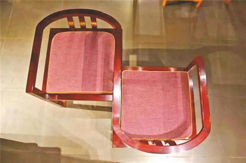 仔細(xì)端詳這套鴛鴦椅,探班員發(fā)現(xiàn),其采用了中心對稱的結(jié)構(gòu)形式,既有柔和的曲線,又有剛正的直線,展現(xiàn)出中國人剛?cè)岵?jì)的處世哲學(xué)。“這些看似簡單的設(shè)計,背后都蘊(yùn)含著深刻的意義。”講解員如是說。