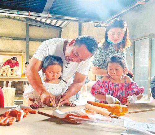 游客體驗(yàn)傳統(tǒng)木作工藝。