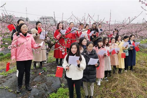 為慶祝中國共產(chǎn)黨成立100周年和紀念“三八”國際婦女節(jié)111周年,增進女教師之間的相互交流學習,3月7日,廣安市前鋒區(qū)得勝小學開展“學黨史 慶三八”主題活動。組織全校24名女教職工參觀了前鋒區(qū)代市鎮(zhèn)會龍村800畝桃花園。活動中,女教職工們在桃花園中盡情賞花踏青、拍照留念,并以快閃形式合唱了《沒有共產(chǎn)黨就沒有新中國》《風雨彩虹鏗鏘玫瑰》等歌曲,向中國共產(chǎn)黨成立100周年獻禮,引來眾多游客喝彩。