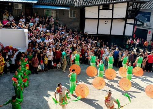 9月19日,廣安市前鋒區(qū)代市鎮(zhèn)鐘街社區(qū)鑼鼓振響全鎮(zhèn)街區(qū),往日蕭條的老街人山人海,舞龍隊(duì)、連響隊(duì)、扇子隊(duì)、腰鼓隊(duì)、太極隊(duì)繞場(chǎng)鎮(zhèn)游行,地方舞蹈、知識(shí)競(jìng)猜、親子活動(dòng)、表彰“最美家庭”“五好家庭”等在社區(qū)進(jìn)行,油炸干、麻花、黃金涼粉、石磨玉米粑等特色小吃應(yīng)有盡有,讓前來(lái)參加和觀看活動(dòng)的干部群眾目不接睱,既飽眼福又飽口福。