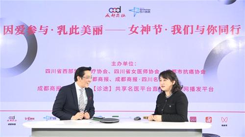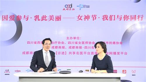 3月7日下午,在成都商報演播廳,來自四川大學(xué)華西醫(yī)院腫瘤中心的主任醫(yī)師鄒立群、四川省腫瘤醫(yī)院乳腺外科中心的副主任醫(yī)師田超、四川省人民醫(yī)院乳腺科的副主任醫(yī)師羅靜以及成都市第三人民醫(yī)院乳腺甲狀腺外科的主任吳劍,正在通過線上直播的模式來為廣大女性同胞科普兩癌的相關(guān)知識。
