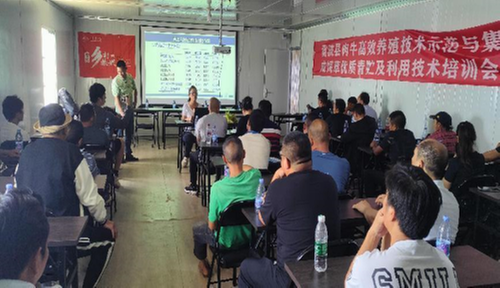 隨后,閆艷紅教授以“飼草優(yōu)質(zhì)青貯及利用技術(shù)”為題,在華潤(rùn)五豐汶水生態(tài)肉牛養(yǎng)殖基地會(huì)議室作了集中專題講座,并贈(zèng)送了學(xué)校科研轉(zhuǎn)化產(chǎn)品“益牧冠菌”飼草青貯發(fā)酵劑。中央紀(jì)委國(guó)家監(jiān)委掛職干部、汶水村第一書記趙玉佳主持培訓(xùn),省教育廳民教處副處長(zhǎng)、雷波縣政府掛職領(lǐng)導(dǎo)馮適,縣教育體育和科學(xué)技術(shù)局、農(nóng)業(yè)農(nóng)村局等相關(guān)人員、雷波縣肉牛養(yǎng)殖大戶、養(yǎng)殖合作社和華潤(rùn)五豐汶水生態(tài)肉牛養(yǎng)殖基地技術(shù)人員60余人參加培訓(xùn)會(huì)。