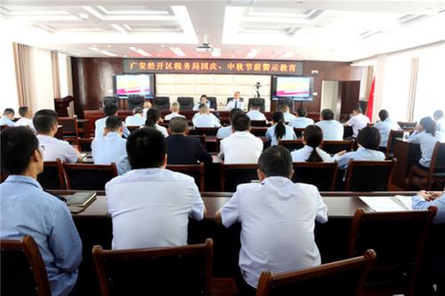 在今年國慶、中秋雙節(jié)期間,廣安經(jīng)開區(qū)稅務局認真貫徹落實中央八項規(guī)定,以“四個專項整治”為推手,扎實開展節(jié)前廉政安全教育,排查風險、消除隱患、強化監(jiān)督,確保全局干部職工平安、廉潔、溫馨過節(jié)。