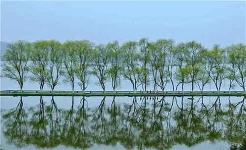 擁有清漪湖省級濕地公園,是一處被低估的湖光茶園美景地。湖中央的老柳一字排開,柳枝隨風(fēng)舞。采茶人歸來,光影綽綽,完全就是古詩詞里的意境。