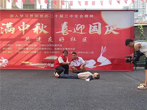 在健康科普環(huán)節(jié),邀請前鋒區(qū)紅十字會的資深老師,現(xiàn)場演示心肺復蘇等急救技能,讓群眾既拓展了衛(wèi)生健康知識面,又學到了實用的應(yīng)急救命技能。