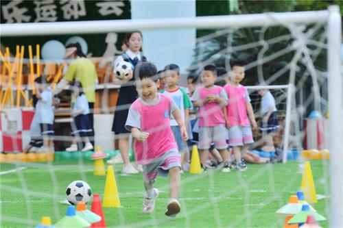 5月22日,南充市蓬安縣城東幼兒園的小朋友在進(jìn)行足球訓(xùn)練。彭圣洲 攝。