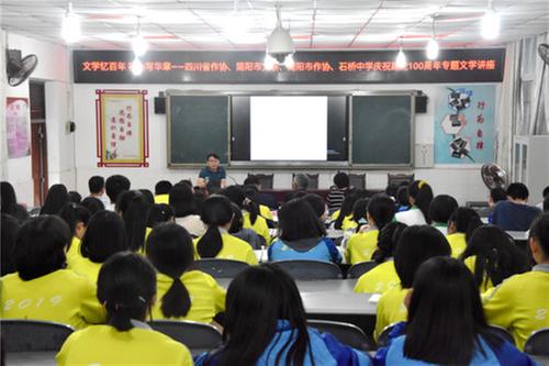 四川省作協(xié)“紅色文學(xué)輕騎兵·百場(chǎng)講座進(jìn)基層”暨四川省圖書(shū)館“21市州講座聯(lián)盟”走進(jìn)簡(jiǎn)陽(yáng)活動(dòng)以及“文學(xué)憶百年 初心寫(xiě)華章”四川省作協(xié)、簡(jiǎn)陽(yáng)市文聯(lián)、簡(jiǎn)陽(yáng)市作協(xié)慶祝建黨100周年專(zhuān)題文學(xué)講座于5月22日在簡(jiǎn)陽(yáng)市石橋中學(xué)舉行,以文學(xué)之名慶祝建黨100周年,砥礪初心使命,強(qiáng)化使命擔(dān)當(dāng),為新時(shí)代文學(xué)事業(yè)繁榮發(fā)展凝聚共識(shí)、貢獻(xiàn)力量。