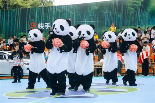 在本次“快手村BA”四川站,川蜀文化的創(chuàng)意呈現(xiàn)也依舊是賽事亮點(diǎn)。COS表演者扮裝“四川頂流”大熊貓,矯健舞球化身球場“功夫熊貓”。川劇經(jīng)典變臉絕活也走上村BA籃球場,一展巴蜀戲劇文化的風(fēng)采。