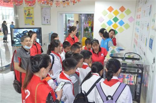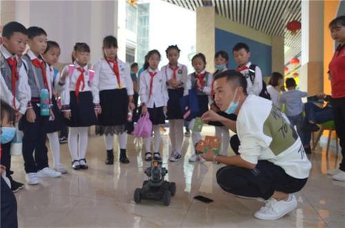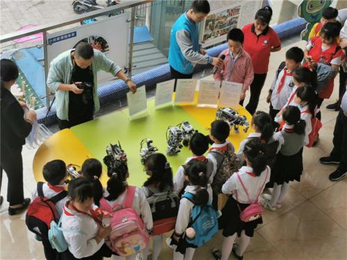 孩子們在小小講解員的帶領(lǐng)下,興奮的了解著各種機(jī)器人