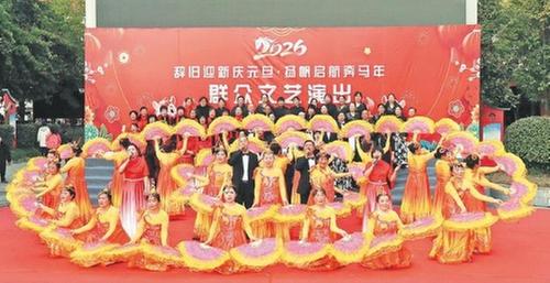 12月28日,南充市儀隴縣老年人體育協(xié)會音樂分會在德園廣場舉行“辭舊迎新慶元旦 揚帆啟航奔馬年”大型群眾文藝演出,為當(dāng)?shù)厝罕妿砹艘粓龆諟嘏?ldquo;視覺盛宴”,為歲末增添了濃濃的喜慶氛圍。(陳思濤 唐明平 攝影報道)