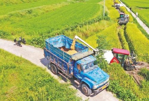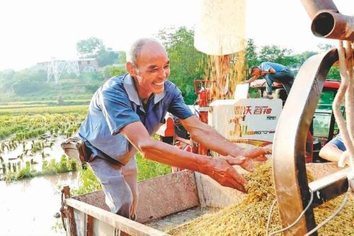8月5日,在瀘州市龍馬潭區(qū)胡市鎮(zhèn),村民使用收割機(jī)完成稻谷脫粒工作。據(jù)了解,今年該區(qū)6.6萬畝水稻喜獲豐收,機(jī)械化收割率達(dá)95%以上,為保豐收提供了有力支撐。(陳星宇 攝影報(bào)道)
