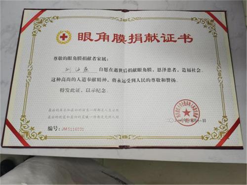 眼角膜捐獻(xiàn)證書(shū)