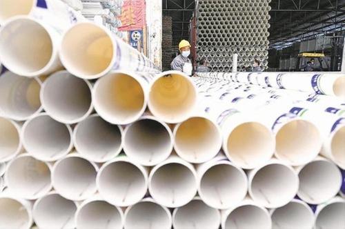 近日,在內(nèi)江東興經(jīng)濟開發(fā)區(qū)一塑料制品公司內(nèi),工人在裝運高分子聚氯乙烯管材。