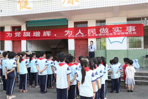 “同學(xué)們,你們知道最小的革命烈士小蘿卜頭的故事嗎?下面阿姨給你講訴一下他的一些愛學(xué)習(xí)為黨傳遞情報(bào)的小故事。”在捐贈儀式現(xiàn)場,廣安金城公證處還向留守兒童上了一堂黨課,講得深情,學(xué)生聽得認(rèn)真,還有學(xué)生為小英雄流淚。
