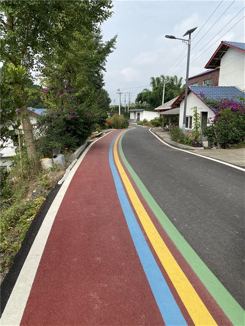 映入眼簾的路容路貌發(fā)生了翻天覆地的變化……一條掩映在竹林中別致的柏油公路,總長3.9公里、寬5.5米,不再是單調(diào)的黑白色,而是以鮮艷的紅、黃、綠、藍(lán)為標(biāo)線和跑道增色添彩,與周邊的自然環(huán)境渾然天成,給人耳目一新的感覺。
