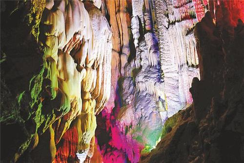 繼續(xù)往前走,有一個因鈣化沉積而形成的溶洞,洞內(nèi)有一個巨大的鐘乳石,形似大象,為推崇自然之美,取《道德經(jīng)》“大象無形”中“大象”之意,故得名大象洞。如今,洞內(nèi)很多鐘乳石還處在活躍的生長期。曾禎介紹說,為了增加游客的體驗感,洞內(nèi)采用了現(xiàn)代聲光技術(shù),對洞內(nèi)原始地貌進行包裝和打造,使洞內(nèi)呈現(xiàn)出五彩繽紛的場景,這也增加了洞內(nèi)的神秘色彩。探班員置身于洞內(nèi),似身處仙境,頗有一步穿越億年光陰、見證萬千氣象之感!