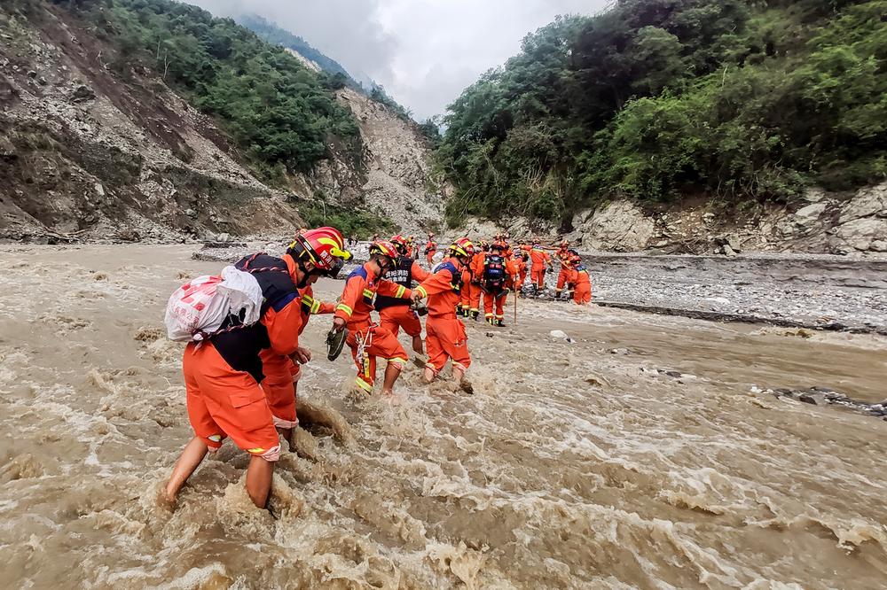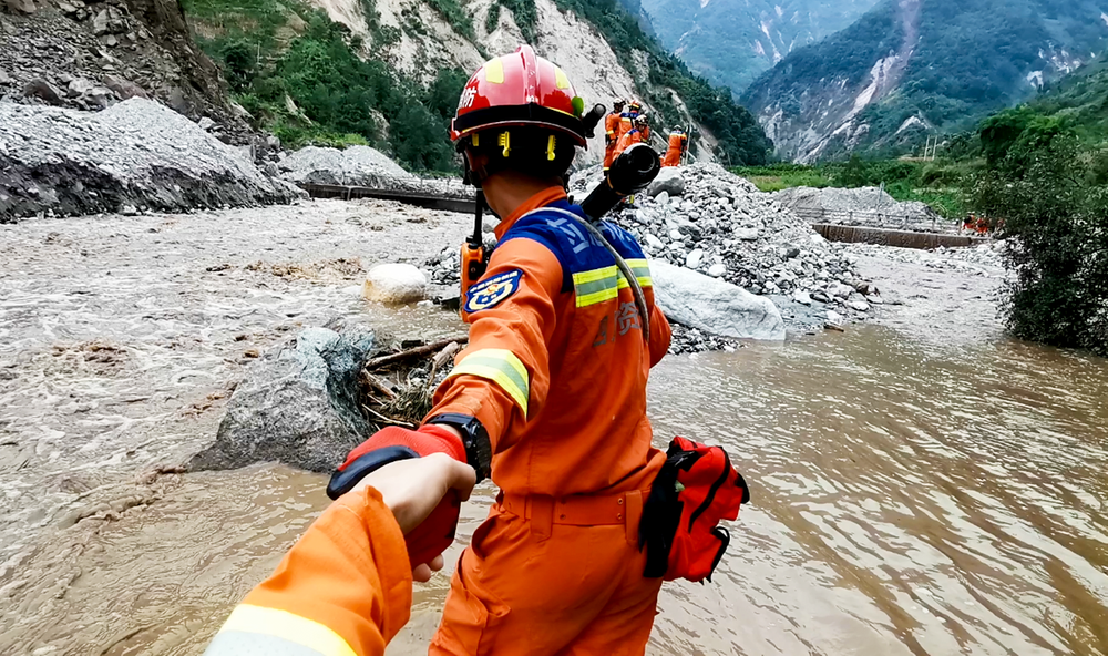 救援難度遠(yuǎn)超預(yù)期,“以生命拯救生命”的場景在不斷上演——坡度達(dá)80度的垮塌山體上,他們冒著隨時(shí)被山體掩埋的危險(xiǎn),艱難爬行轉(zhuǎn)移群眾;被湍急的河水擋住去路,他們用幾根樹木綁成簡易小橋,抬著傷員一步一步往前挪;老奶奶受傷無法行走,他們用“公主抱”感動(dòng)了無數(shù)人;嬰兒受傷驚魂未定,他們用棉簽為孩子擦去臉上的血跡,孩子神情頓時(shí)安然;兩頭小牛被掩廢墟下,他們毅然施救并小心翼翼將其抱出,他們說:“每個(gè)生命都值得尊重,每個(gè)生命都值得拯救!”