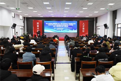 12月19日上午,樂(lè)山國(guó)家高新技術(shù)產(chǎn)業(yè)開(kāi)發(fā)區(qū)產(chǎn)教聯(lián)合體(以下簡(jiǎn)稱“聯(lián)合體”)2024年工作會(huì)在樂(lè)山職業(yè)技術(shù)學(xué)院學(xué)術(shù)交流中心召開(kāi)。樂(lè)山市教育局黨組成員、機(jī)關(guān)黨委書(shū)記徐波,樂(lè)山職業(yè)技術(shù)學(xué)院校長(zhǎng)劉忠、副校長(zhǎng)周芹,樂(lè)山高新技術(shù)產(chǎn)業(yè)開(kāi)發(fā)區(qū)黨工委委員、管委會(huì)副主任周睿出席,來(lái)自樂(lè)山市相關(guān)部門、企業(yè)、職業(yè)院校的50余名代表和學(xué)校師生代表參加會(huì)議。