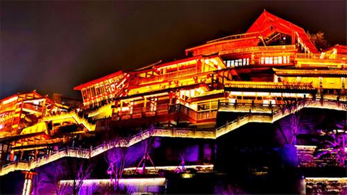 在修復(fù)設(shè)計理念上,古鎮(zhèn)風(fēng)格融合了巴渝文化、嘉陵江流域文化以及中原文化精髓。漫步古鎮(zhèn),兩旁建筑錯落有致,雕梁畫棟間,花鳥魚蟲、人物故事栩栩如生,勾勒出一幅古樸而典雅的畫卷。青石小路,蜿蜒曲折,夕陽西下,一盞盞燈籠點亮夜晚,熱鬧之中深藏著靜謐,時光仿佛倒流回千年之前。