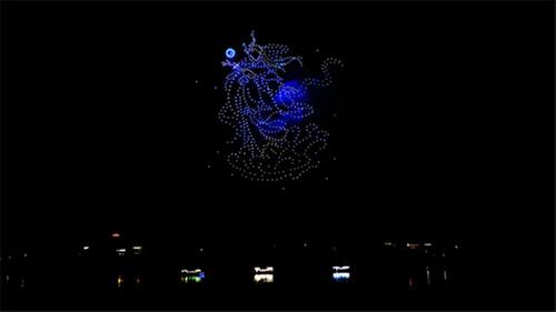 “掌燈啦!”1月24日19時許,伴隨一聲悠長的號子,沿口古鎮(zhèn)正式開街。燈光次第亮起,建筑群流光溢彩,璀璨奪目,千年沿口煥新歸來。以“千年龍韻”為主題的無人機秀,上千架無人機在嘉陵江上空以光影為筆、夜空為幕,描繪出巴國漁獵、漢初遺韻、定遠安寧、武勝船歌、飛龍在天等夢幻圖景。