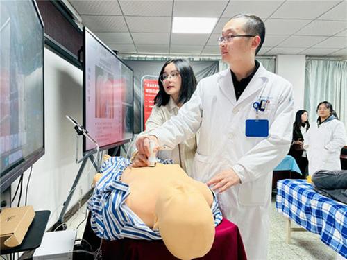 此次培訓(xùn)教學(xué)內(nèi)容涵蓋豬心解剖知識遷移、超聲斷層解剖數(shù)字人、數(shù)字人模擬+及即時超聲技能訓(xùn)練、常見危急重病閱片等。參會學(xué)員在講師的帶領(lǐng)下親身體驗參與豬心解剖,通過解剖心臟,將知識遷移到超聲心動圖的每個截面,讓學(xué)員對超聲基礎(chǔ)與操作要義有了初步認識;重點通過現(xiàn)場操作指導(dǎo),專家現(xiàn)場指導(dǎo)圖像采集與分析,在實際操作中講解可視化技術(shù)如何優(yōu)化診療過程與提升服務(wù)質(zhì)量。