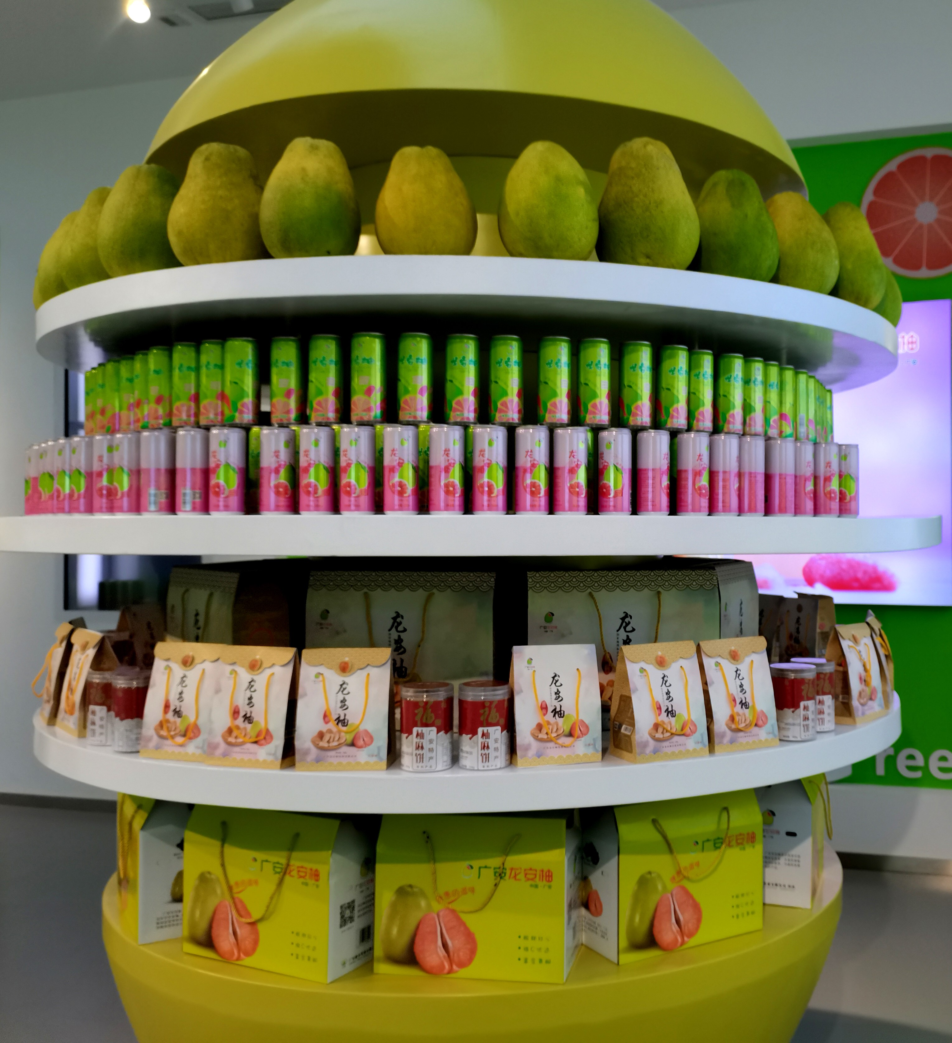 活動現(xiàn)場,精品龍安柚的展位上除了柚子鮮果,還展出有龍安柚果汁飲料、果汁汽水、柚花茶、柚子麻餅、柚皮辣醬等采用先進(jìn)生產(chǎn)工藝精制而成的柚子產(chǎn)品。豐富多彩的龍安柚系列產(chǎn)品、有著本土特色的文藝表演,吸引了來自全國各地眾多的游客和商家前來參與。