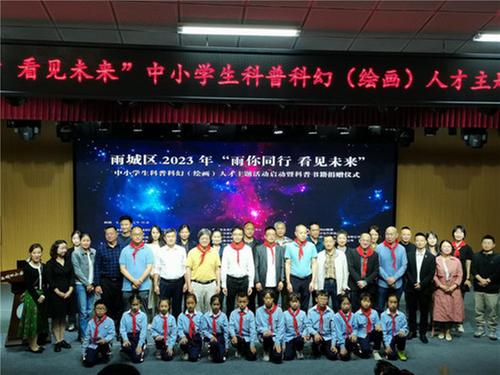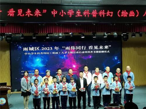 5月26日,由雅安市雨城區(qū)科協(xié)、雅安市雨城區(qū)委人才辦、雅安市雨城區(qū)教育局、雅安市雨城區(qū)文化體育和旅游局聯(lián)合主辦的“雨城區(qū)2023年‘雨你同行 看見(jiàn)未來(lái)’中小學(xué)生科普科幻人才主題活動(dòng)啟動(dòng)暨科普書籍捐贈(zèng)儀式”在雅安市雨城區(qū)四小光華校區(qū)隆重舉行。此次活動(dòng)特別邀請(qǐng)了知名作家魏振麒、朱明燦、陸楊、紫龍晴川、何明瀚、洪碧渭進(jìn)行訪談講座。雨城區(qū)常委、總工會(huì)主席毛健,雨城區(qū)組織部副部長(zhǎng)楊杰及雨城區(qū)教育系統(tǒng)相關(guān)學(xué)校負(fù)責(zé)人22余人、四小光華校區(qū)學(xué)生200余人參加啟動(dòng)儀式,雨城區(qū)科協(xié)主席劉學(xué)敬主持啟動(dòng)儀式。