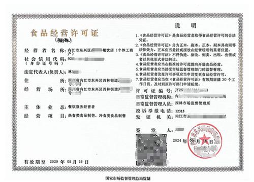 (林先生的餐飲店食品經(jīng)營許可證圖片)