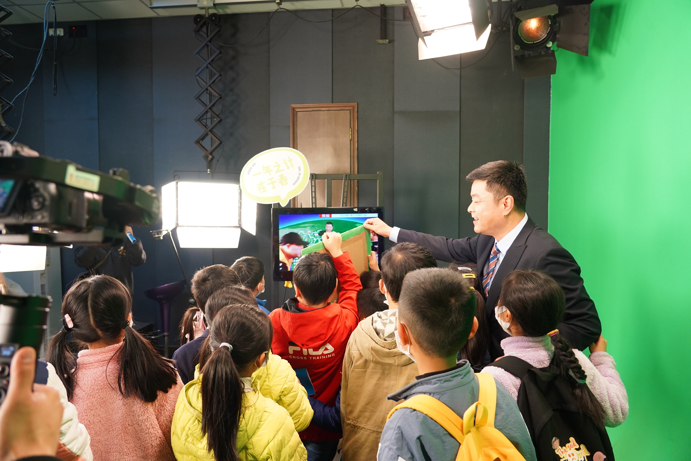 隨后,小記者們來(lái)到神秘的專(zhuān)業(yè)氣象中心,了解氣象是如何為電力、能源、交通、旅游等其他行業(yè)服務(wù)的。小記者們還參觀了影視制作中心,化身氣象小主播播報(bào)天氣。