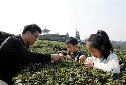 “春天到了,帶著小朋友來感受一下大自然,體驗(yàn)一下采茶的樂趣,到了這里滿眼都是綠色,心情感到很舒暢。”游客楊洛陽表示。