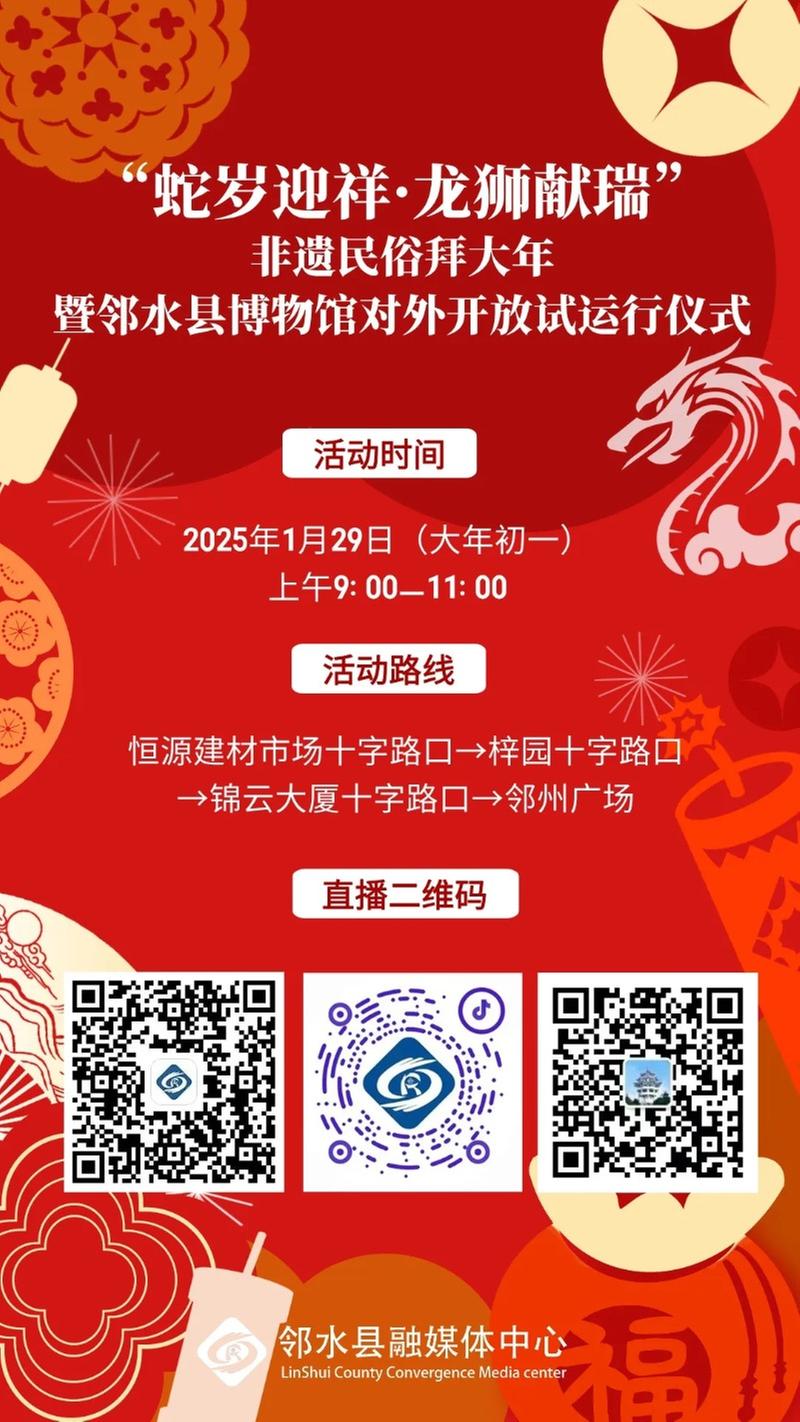 鄰水縣將在大年初一舉行“蛇歲迎祥·龍獅獻瑞”非遺民俗拜大年暨鄰水縣博物館對外開放試運行儀式為您帶來一場年味十足的文化盛宴!