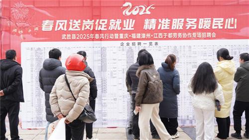 為做好春節(jié)前后勞動(dòng)者換崗流動(dòng)高峰期和企業(yè)開工復(fù)產(chǎn)關(guān)鍵期就業(yè)服務(wù)工作,全力促就業(yè)、保民生、助發(fā)展,2月8日,由廣安市武勝縣人社局主辦,聯(lián)合重慶、福建、江西等地相關(guān)部門協(xié)辦的2025年“春風(fēng)送崗促就業(yè)?精準(zhǔn)服務(wù)暖民心”主題招聘活動(dòng)在川渝·武勝人力資源服務(wù)產(chǎn)業(yè)園隆重舉行。