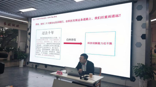 會上,資陽市委宣講團(tuán)成員、市委黨校講師楊黎明就學(xué)習(xí)貫徹黨的二十大報告精神,堅(jiān)定不移推動科技創(chuàng)新為題,從為什么要加強(qiáng)科技創(chuàng)新、不注重科技創(chuàng)新會怎么樣、如何實(shí)現(xiàn)科技創(chuàng)新三個方面開展宣講,深入淺出地帶領(lǐng)科技工作者學(xué)習(xí)領(lǐng)會黨的二十大精神,深入理解內(nèi)涵,精準(zhǔn)把握外延,強(qiáng)調(diào)堅(jiān)持創(chuàng)新引領(lǐng)發(fā)展,實(shí)現(xiàn)高水平科技自立自強(qiáng)。
