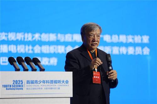 劉嘉麒院士表示,巴中這片充滿生機(jī)與歷史底蘊(yùn)的土地,如今正承載著推動青少年科普事業(yè)發(fā)展的重要使命??破展ぷ?,是國家科技創(chuàng)新體系的重要組成部分,對于提升全民科學(xué)素質(zhì)、培養(yǎng)創(chuàng)新人才具有不可替代的作用。而聚焦于青少年群體的科普活動,更是意義非凡。“今天現(xiàn)場來了許多青少年,你們在學(xué)習(xí)和生活中或許已經(jīng)認(rèn)識了許多科學(xué)知識,還可以再多思考,知識如何成為力量。”盧春房院士說:“這次視聽大會不僅是對革命先輩科學(xué)報(bào)國精神的傳承,更是對新時(shí)代青少年科技創(chuàng)新夢想的點(diǎn)燃。當(dāng)科普與視聽結(jié)合,科普作品便有了更豐富的表現(xiàn)形式;當(dāng)科普與文旅結(jié)合,青少年可以將理論知識與實(shí)踐相結(jié)合,在娛樂中學(xué)習(xí)科學(xué)知識,感受探知未知世界的科學(xué)之美。”