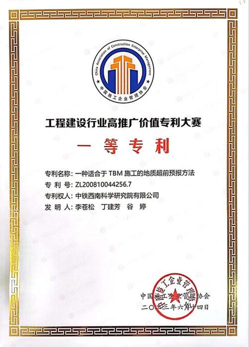中鐵科研院西南院一項發(fā)明專利獲工程建設(shè)行業(yè)高推廣價值專利大賽一等獎